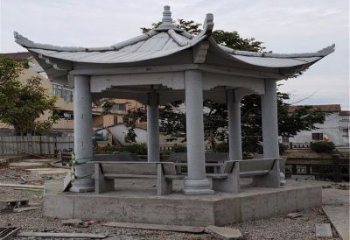 如涼亭雕塑,就是全部以石材仿造木結構的斗拱梁架而建造的。此外,中式涼亭雕塑也是如此。