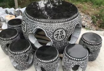 仿古青石休閑庭院裝飾浮雕圓桌石凳