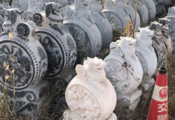 漢白玉抱鼓石雕塑各盡其長,而且出現(xiàn)綜合使用的趨向。因之,追求繁縟華美,成為這一時(shí)期主導(dǎo)的審美傾向,漢白玉門前抱鼓石雕塑尤為突出。漢白玉抱鼓石雕塑尚未從工藝美術(shù)中脫出,所以仍然保留著很強(qiáng)的裝飾性。